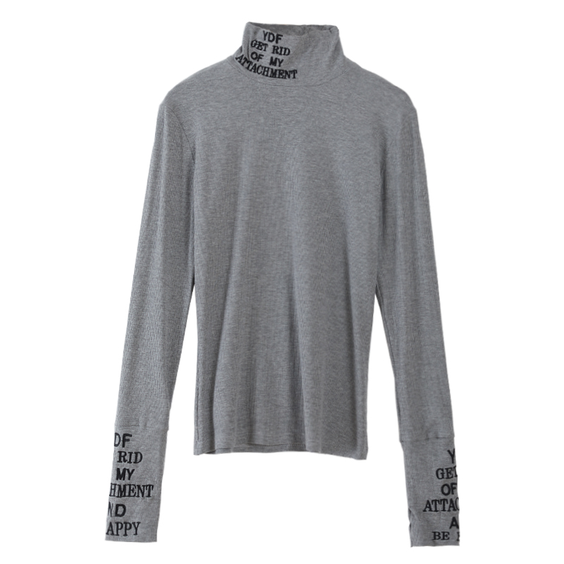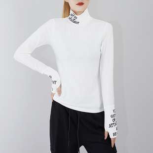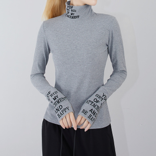 螺纹高领T恤网红长袖 字母绣花修身 上衣女配大衣 女新款 打底衫