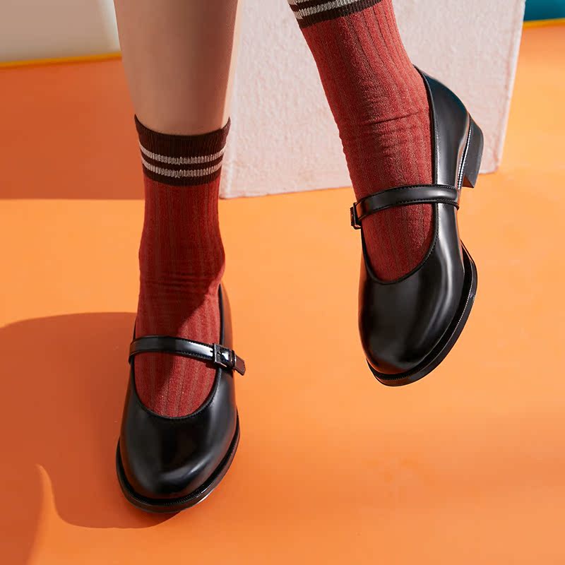 配裙子气质浅口单鞋 粗跟玛丽珍女鞋 子 小皮鞋 戈美其集合单鞋