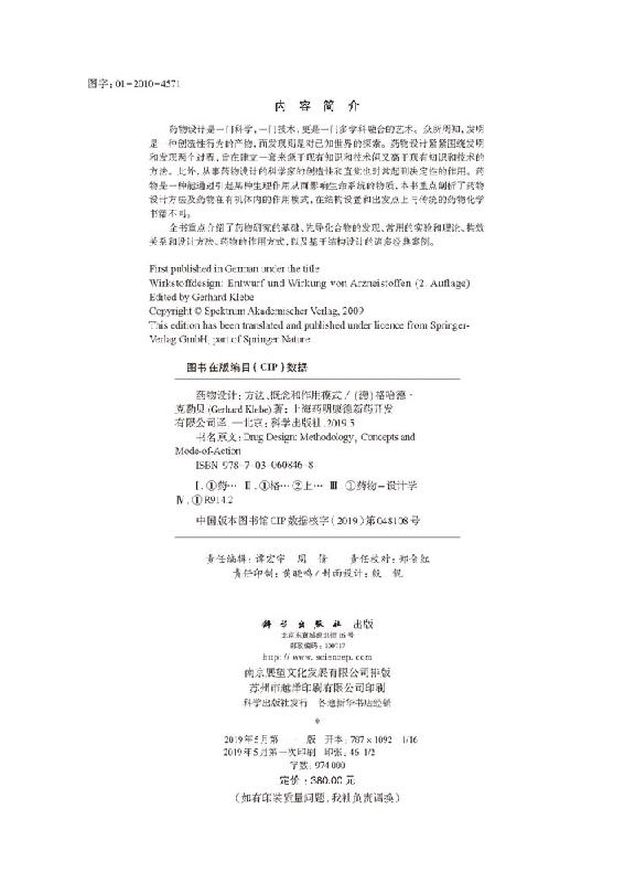 Klebe上海药明康德新药开发有限公司科学出版 药物设计 译丛德格哈德克勒贝Gerhard 药明康德经典 9787030608468 方法概念和作用模式