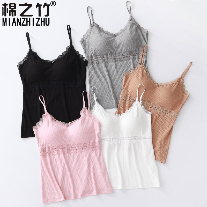 春夏薄款 文胸罩杯 莫代尔带胸垫宽松吊带背心打底性感女内衣一片式