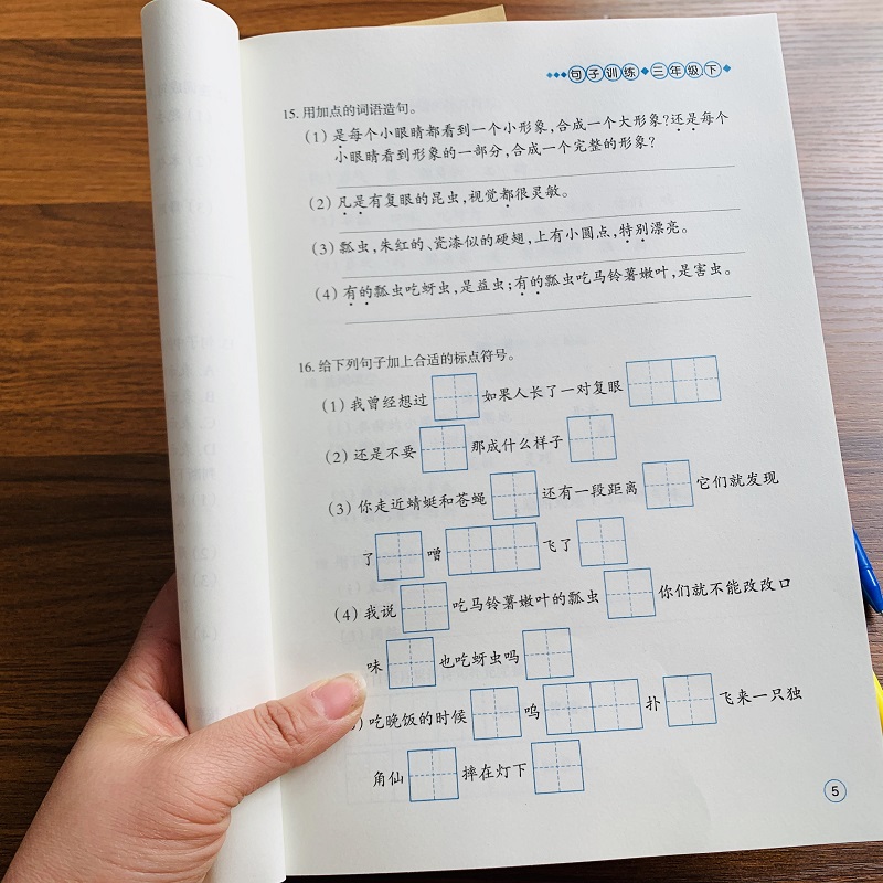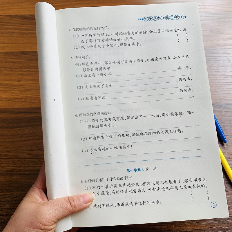 课本同步照样子仿写句子课堂课业本 小学生三年级下册句子训练部编人教版 3年级句子排序加标点造句扩写句子把句子补充完整 新版 RJ版