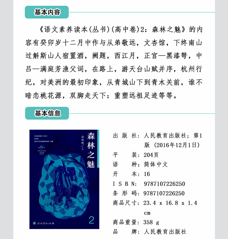 引发阅读兴趣感受汉语之美提升语文素养 森林之魅 温儒敏主编 高中卷2 中小学教辅高中通用语文读物课外阅读 语文素养读本丛书