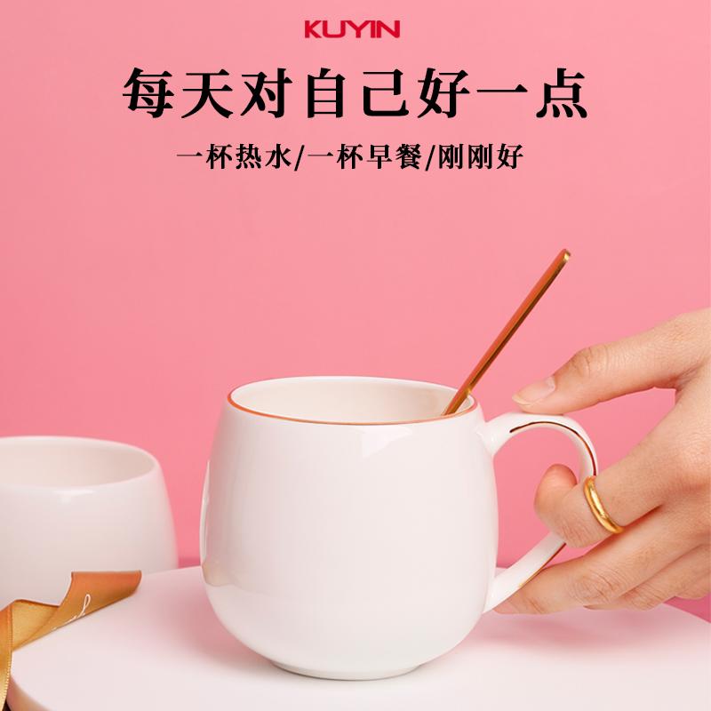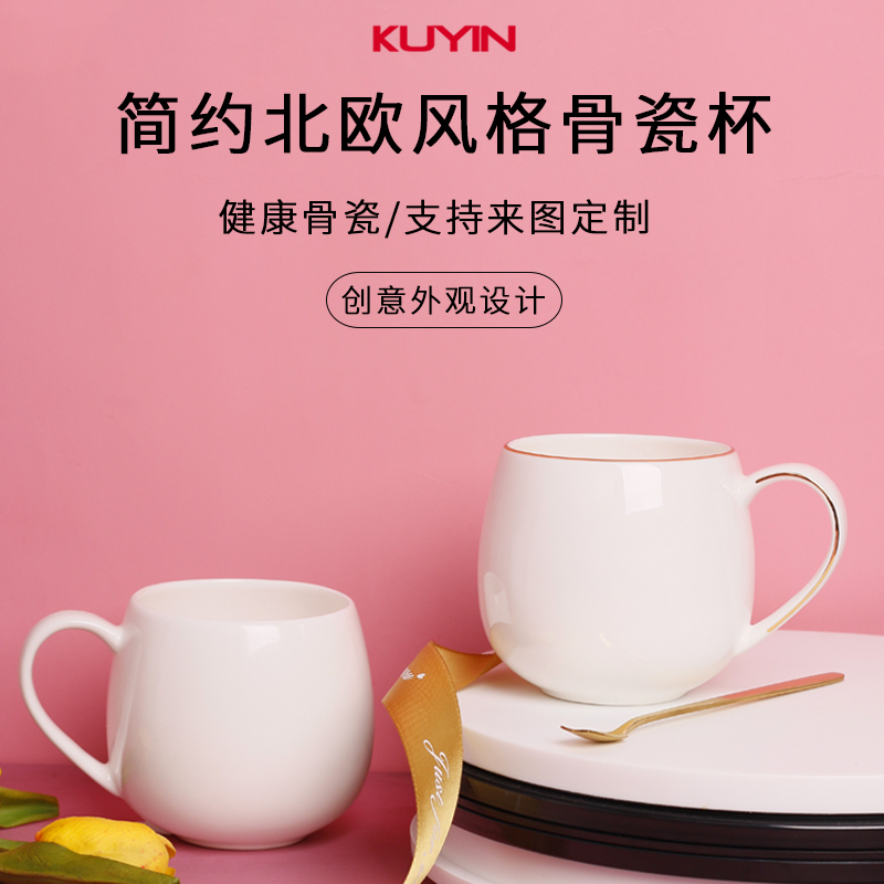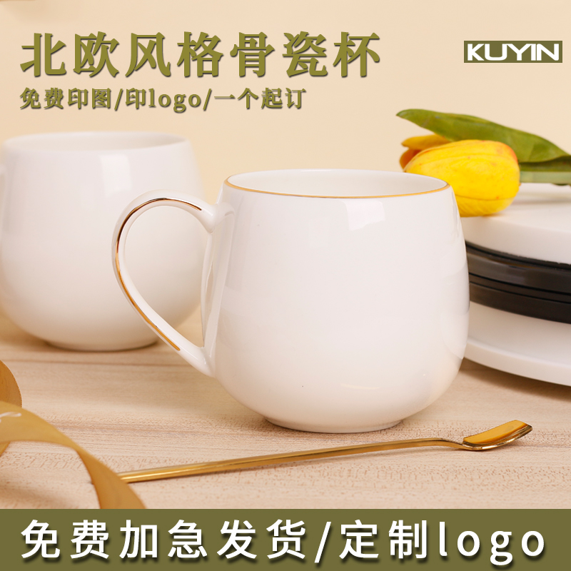 kuyin唐山骨瓷马克杯北欧ins马克杯定制印图logo二维码 定做杯子A