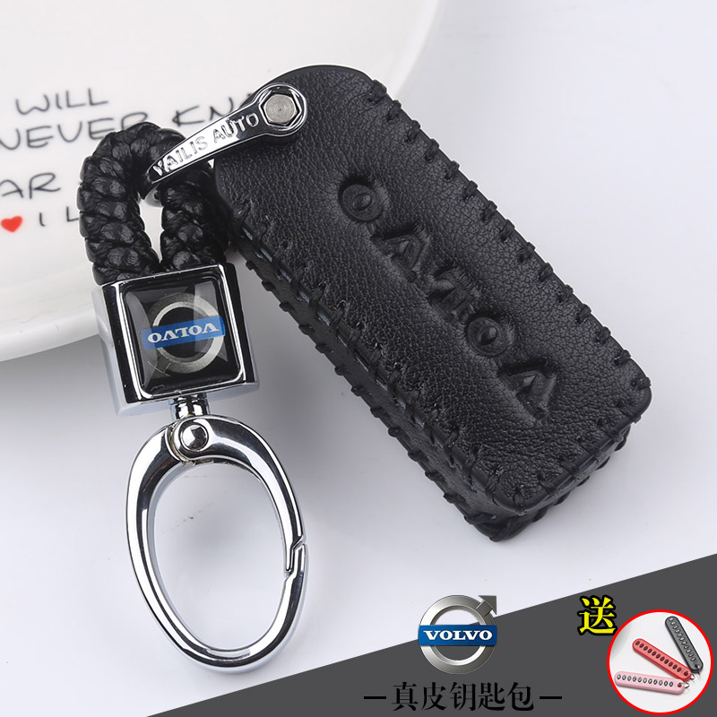 适用沃尔沃S90钥匙套XC60XC90V90CC防水汽车智能小钥匙真牛皮包扣