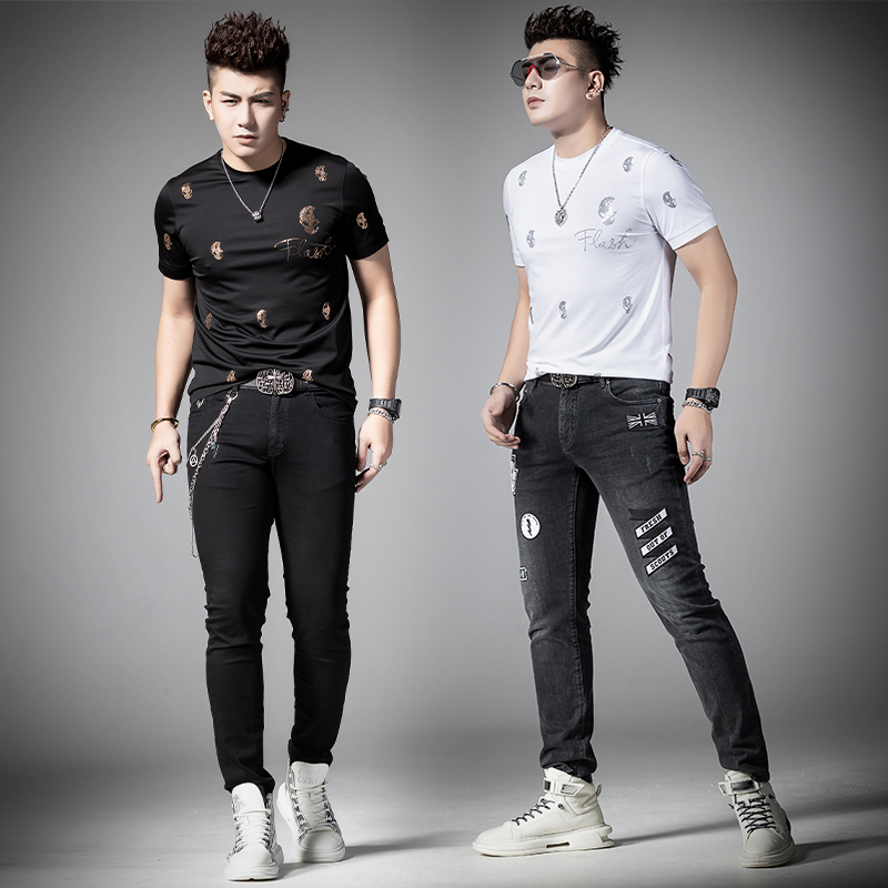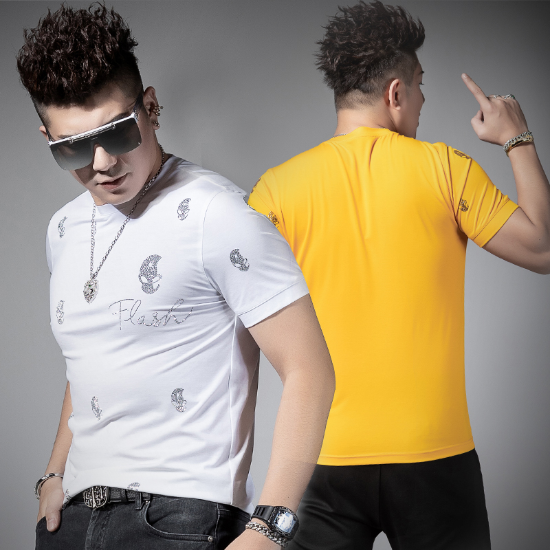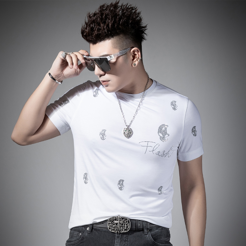 2020夏季 休闲半袖 新款 男士 SXF圣希梵T恤男 短袖 日系烫钻圆领修身