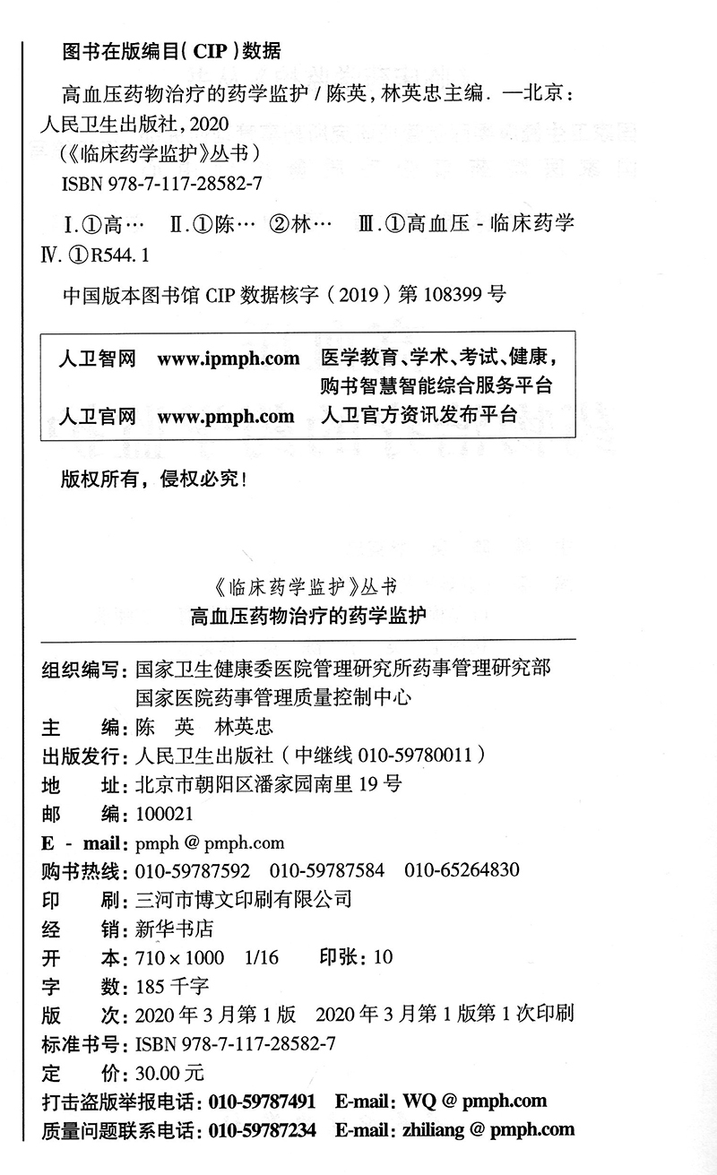 高血压药物治疗 人民卫生出版 药学监护临床药学监护丛书 林英忠 社 陈英 现货