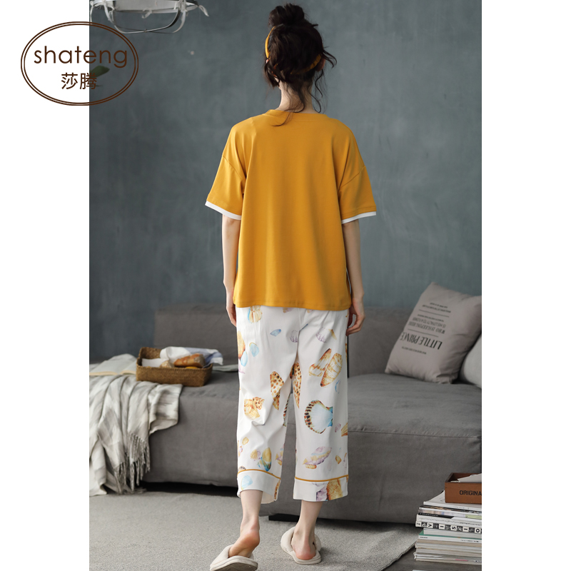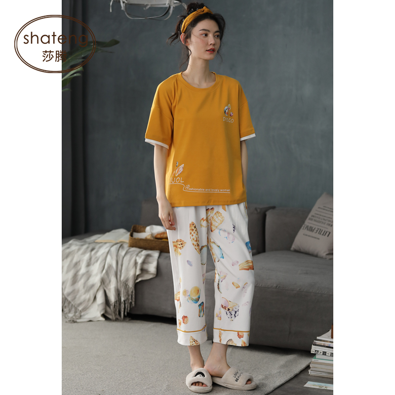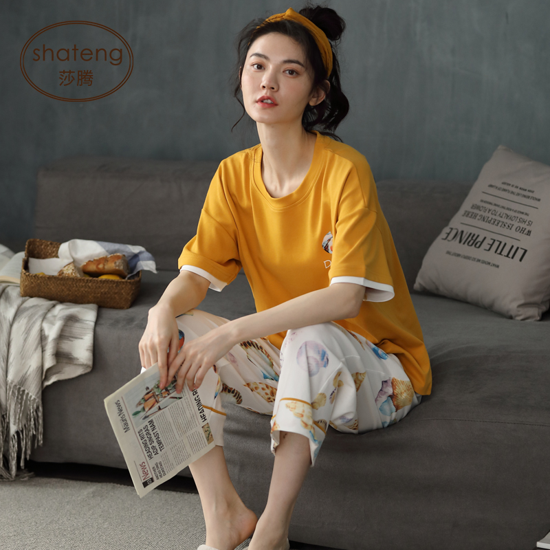 七分裤 纯棉短袖 全棉薄款 韩版 2020新款 可外穿家居服套装 睡衣女夏季