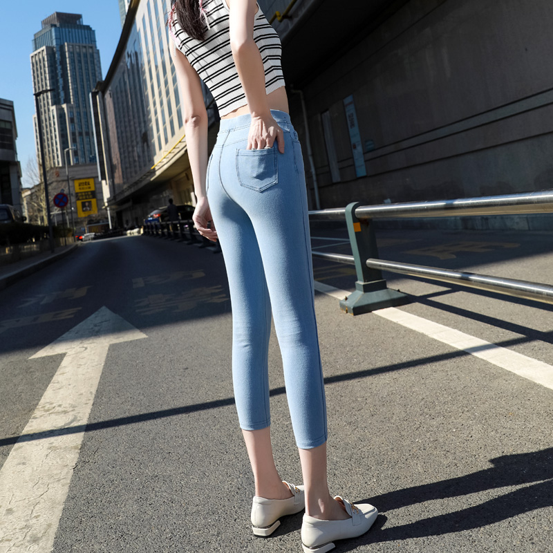 八九分直筒小个子加绒裤 窄版 女秋冬高腰显瘦修身 复古蓝烟管牛仔裤
