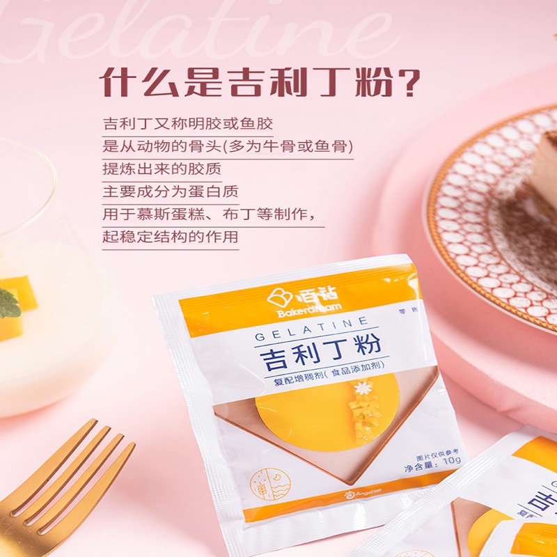 安琪百钻吉利丁粉食用家用烘焙鱼胶粉明胶片奶酪棒布丁果冻用
