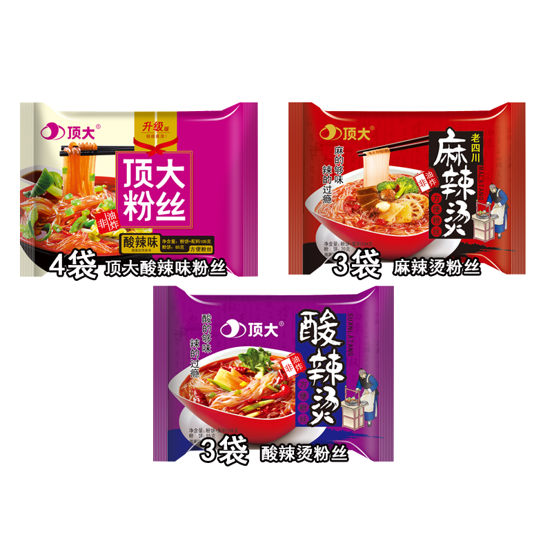 顶大面皮非油炸方便面红薯酸辣粉麻辣烫味粉丝 3种拼10袋整箱批发