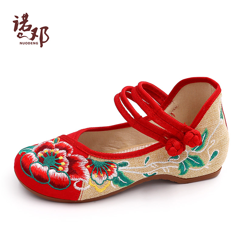 女夏季 透气休闲单鞋 新款 低跟舞蹈鞋 子 民族风绣花鞋 软底老北京布鞋