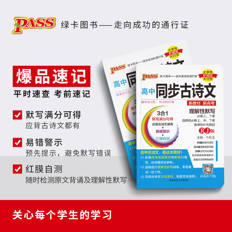 新教材2024新版 爆品速记高中语文同步古诗文送红膜自测卡pass绿卡图书高一高二高三高考语文基础知识手册小本口袋书文言文速记