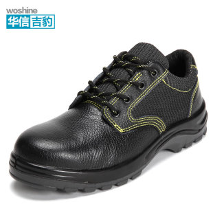 华信吉豹钢头安全鞋 男 透气防臭轻便软底真皮防砸防刺穿劳保鞋