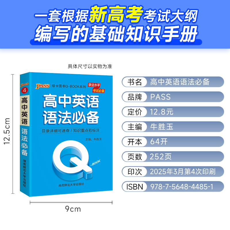 Qbook口袋书高中英语语法必备小册子语法大全全解全析速查速记手册高一高二高三高考备考复习资料通用工具书pass绿卡图书Q book