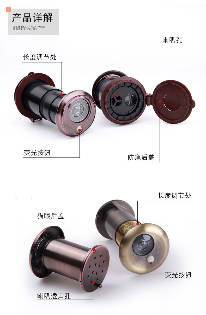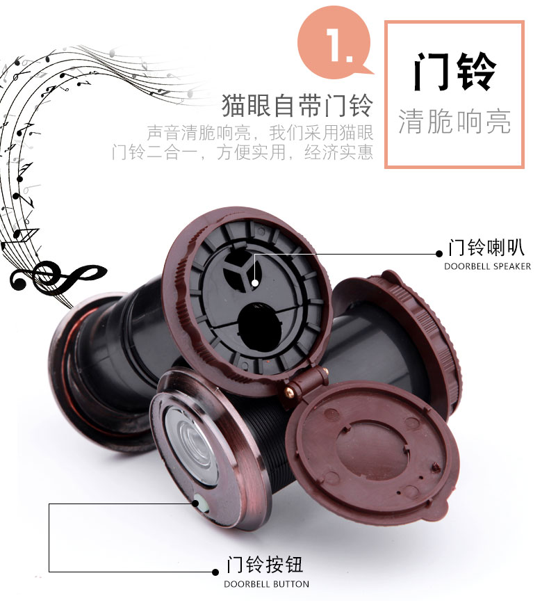 猫眼门铃老式 防盗门通用高清门镜带门铃一体二合一家用加长门眼