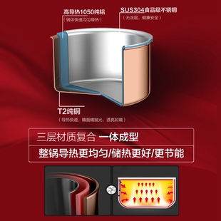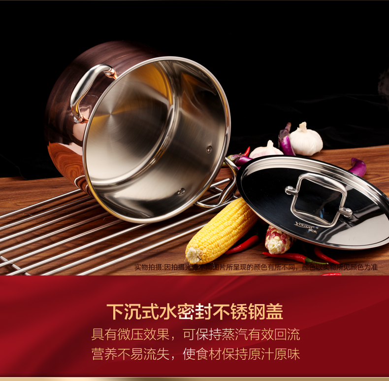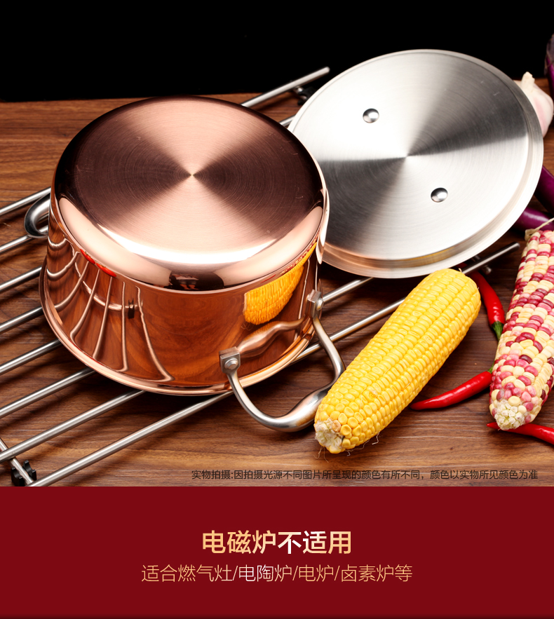 优太无涂层三层铜304不锈钢汤锅加厚锅具双耳火锅炖锅不粘锅26cm