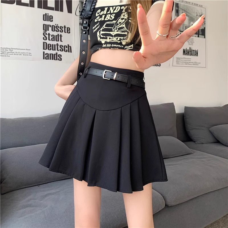 百褶裙女春秋新款 高腰显瘦a字短裙小个子黑色辣妹学生半身裙夏季