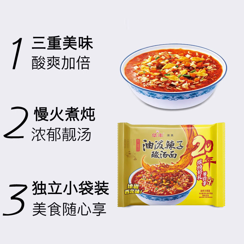 华丰西北风味清真油泼辣子酸汤面袋装 方便面速食泡面夜宵宿舍食品