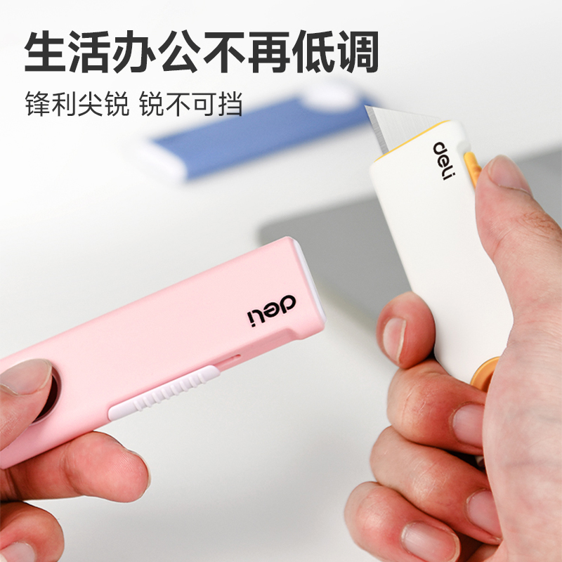得力美工刀背推出刀快递刀多巴胺配色家用迷你小刀便携开箱神器