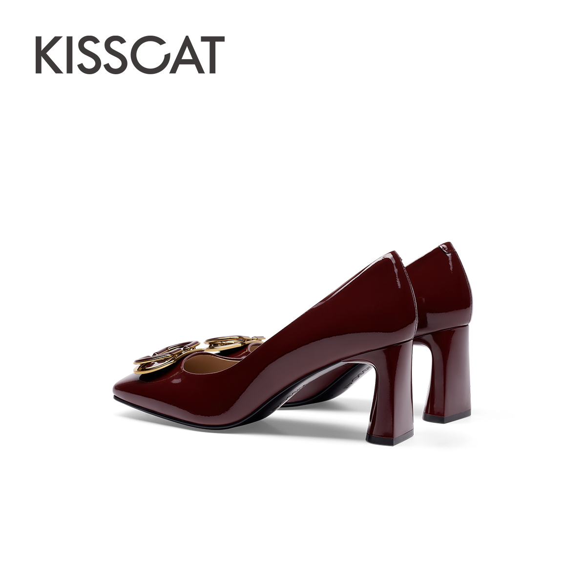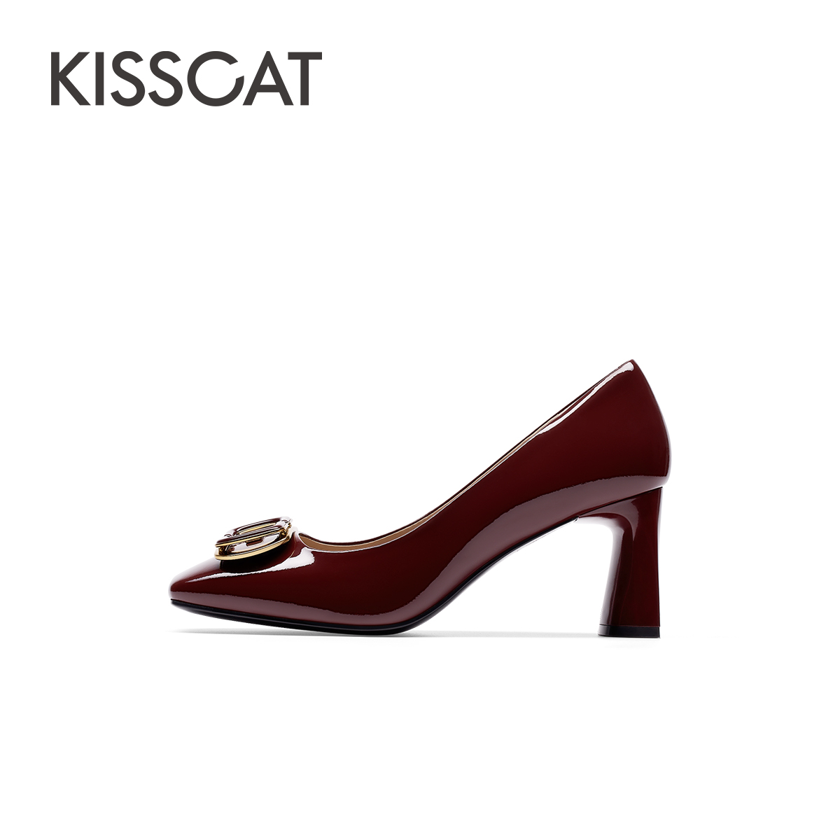 新款 康莉春季 高跟单鞋 女方头真皮通勤时尚 子 方扣浅口鞋 博主推荐