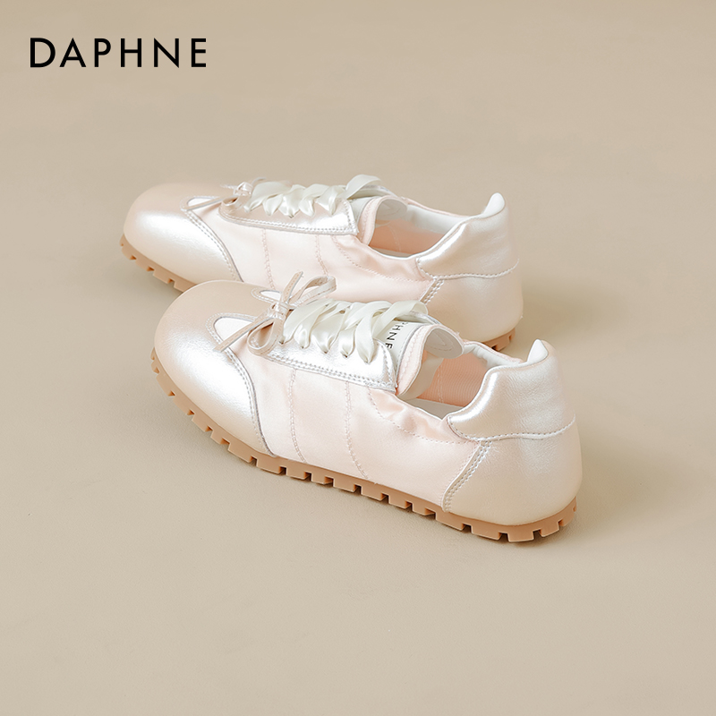 潮流百搭运动鞋 安踏雀跃 薄底T头鞋 女秋季 芭蕾风银色休闲德训鞋