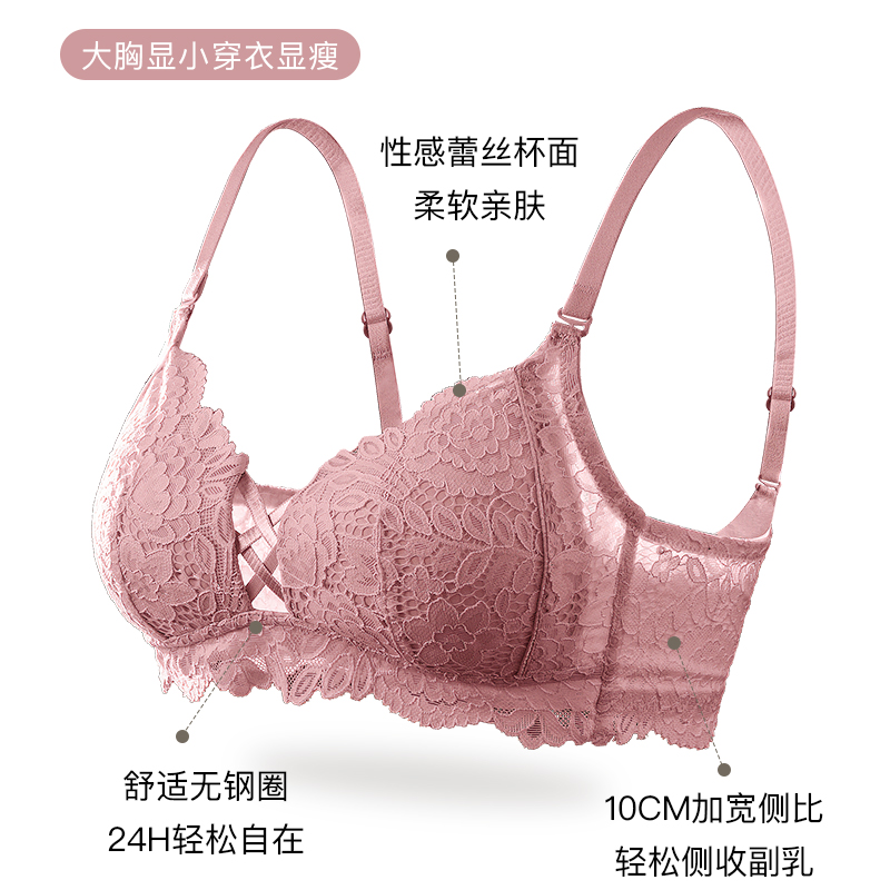 内衣女大胸显小聚拢收副乳防下垂无钢圈薄款 性感调整型文胸罩套装
