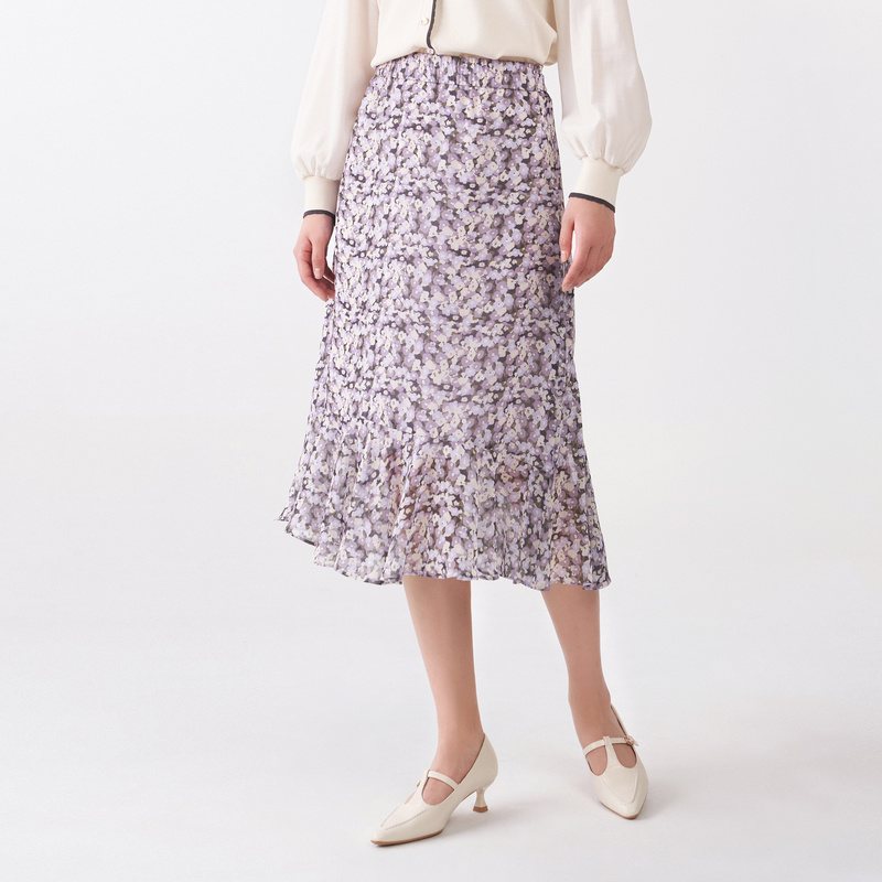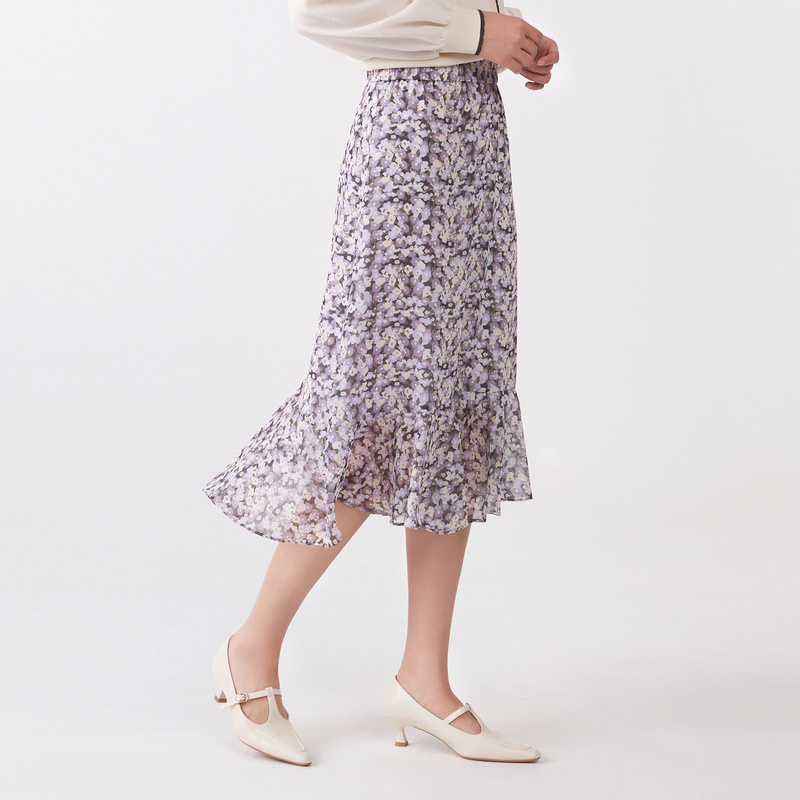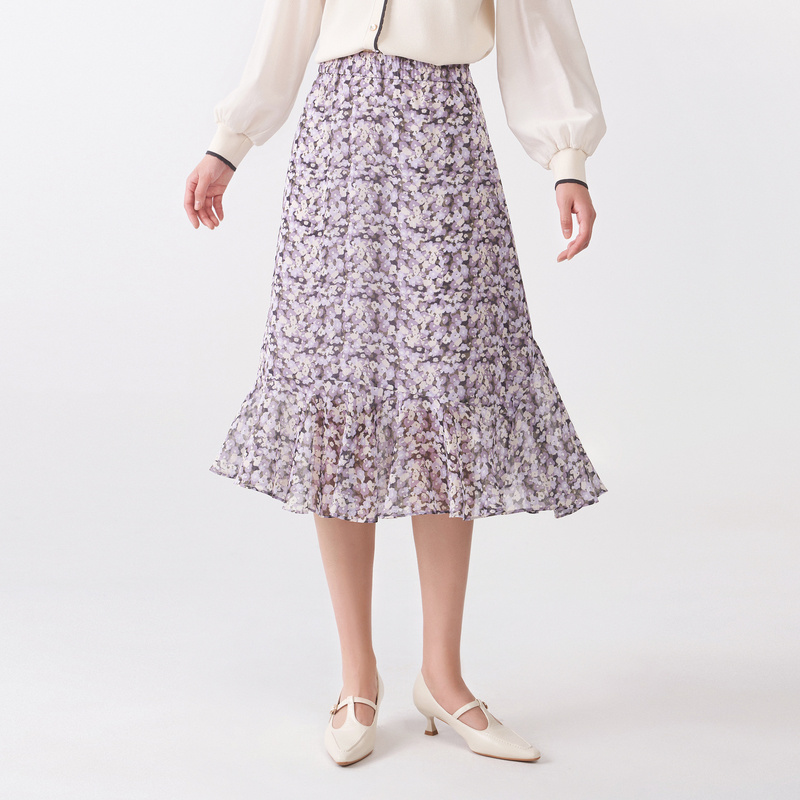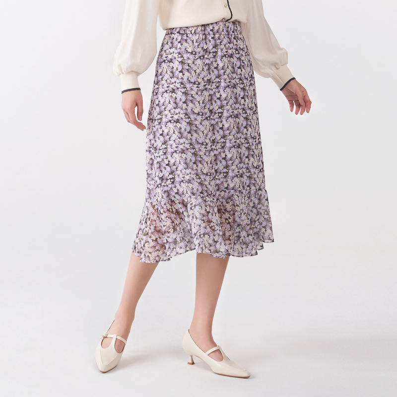 易菲花卉印花中长款 Yifini 优雅半身裙女春秋新款 专柜同款