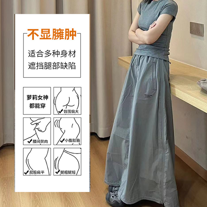 蓬蓬伞裙抽绳可调节户外A字花苞包臀半身裙 裙女夏季 美式 复古工装