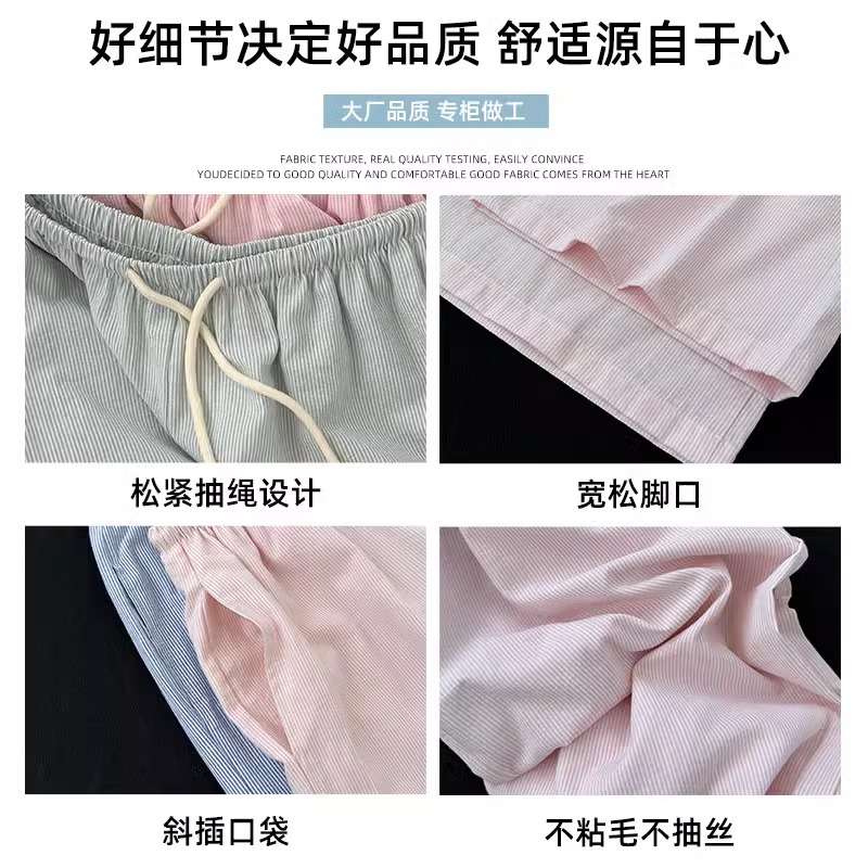2025年夏季 子女式 薄款 宽松休闲垂感拖地裤 阔腿裤 蓝色细条纹凉凉裤