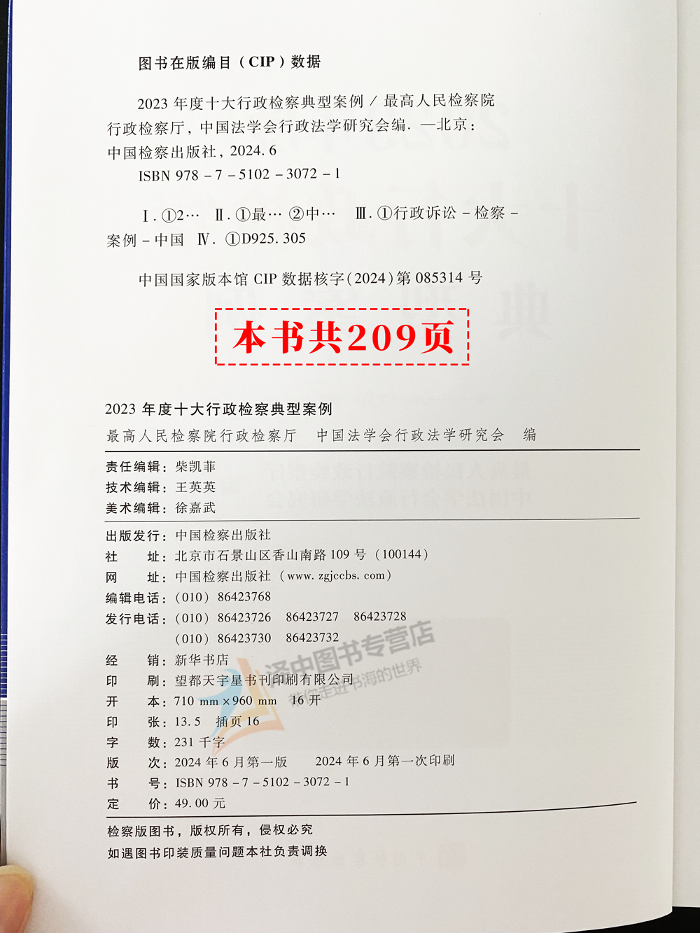 最高人民检察院行政检察厅 2023年度十大行政检察典型案例 优秀案例汇编 业务指导书籍 社9787510230721 正版 中国检察出版 2024新书