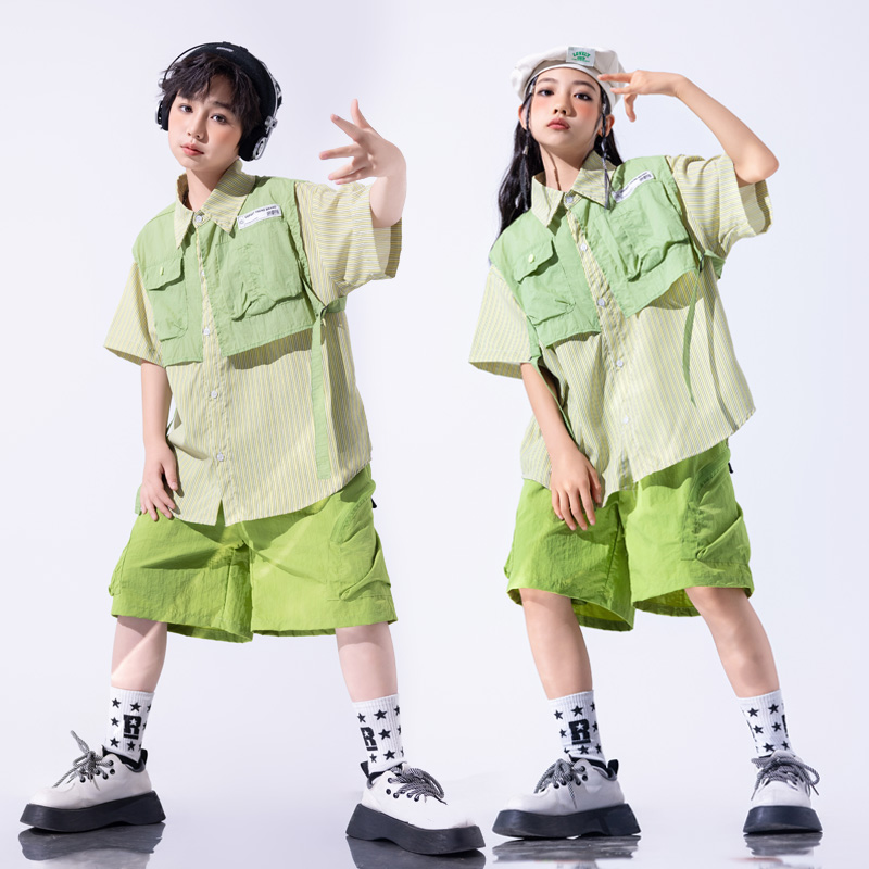 女童帅气hiphop表演服装 街舞儿童潮服男童嘻哈马甲套装 演出服夏季