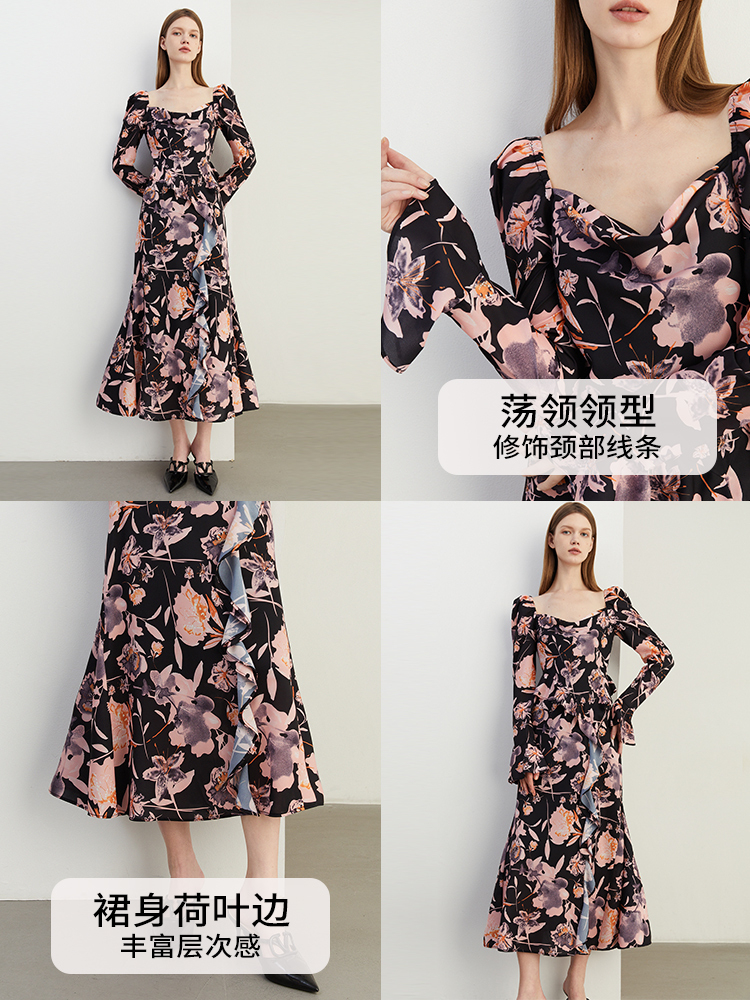 Laurel劳芮经典 周同款 高智圆领连衣裙女LWD341Y05800 巴黎时装