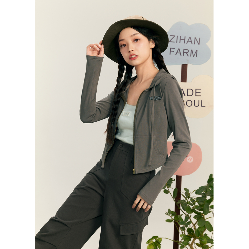 双拉链连帽外套女秋季 开衫 新款 休闲薄款 上衣 通勤收腰修身 紫涵短款