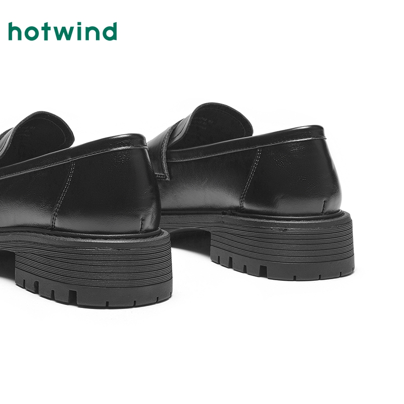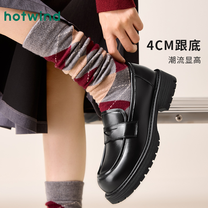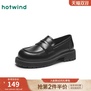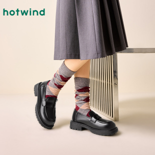 女鞋 热风女鞋 英伦通勤百搭厚底黑色小皮鞋 女士时尚 子 24秋新款