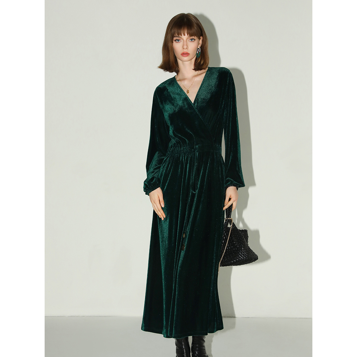 OCHIRLY欧时力 羊毛V领毛针织连衣裙长裙软糯保暖显瘦秋冬新品