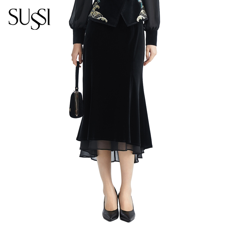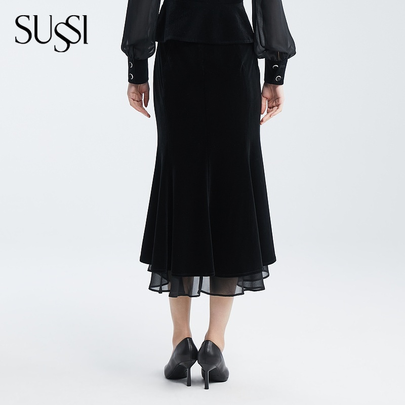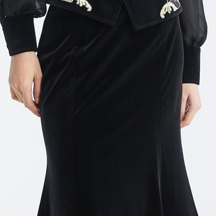 裙子 伞裙西装 图曼朵黑色a字半身裙女秋正装 教资面试职业半裙套装