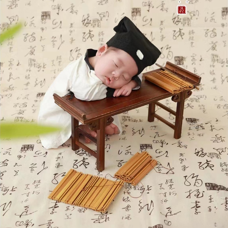小书童新生儿满月百天宝宝拍照道具服饰儿童摄影古装 毛笔书法桌子