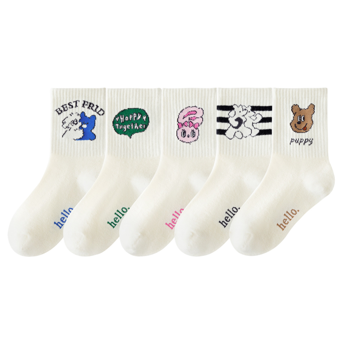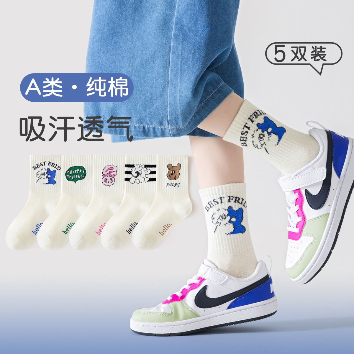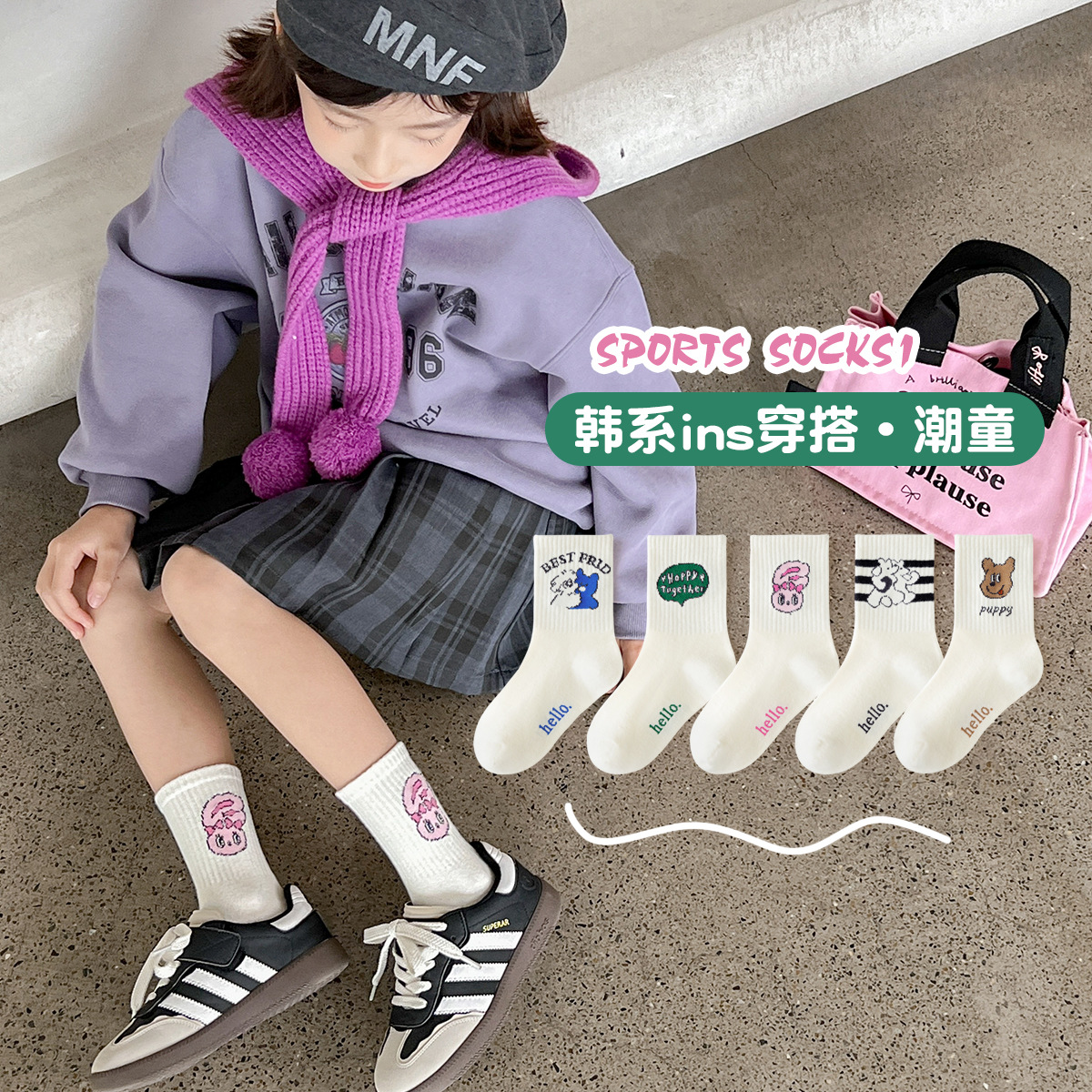 儿童袜子女童春秋季 中筒袜学生潮流运动袜女孩中大童棉袜卡通潮袜
