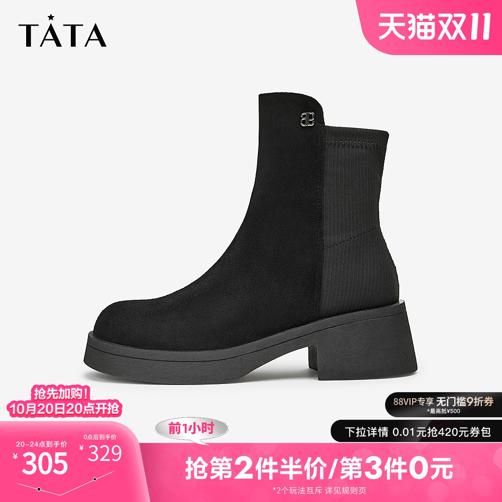 鞋 新款 子W5K04DD4 靴冬季 Tata他她气质粗跟短靴女靴子休闲通勤时装