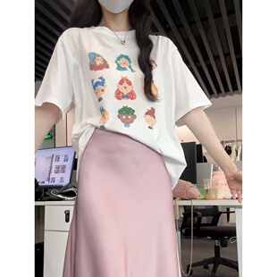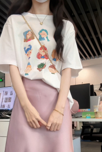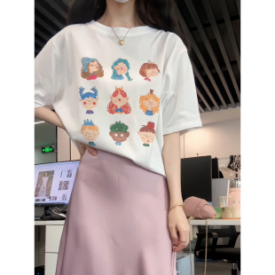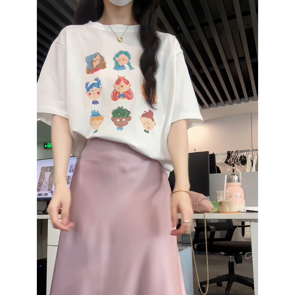 日系甜美风小清新精致印花上衣女2025夏季 高品质纯棉白色t恤 新款