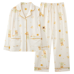 家居服套装 芬腾纯棉睡衣女长袖 甜美2025新款 女生秋季 可外穿 春秋款