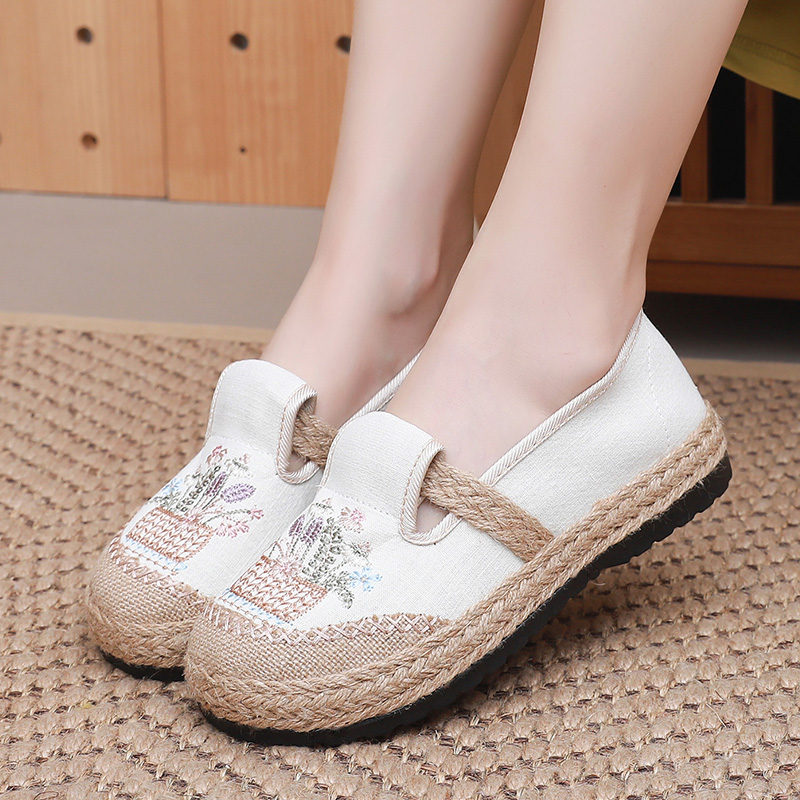 女新款 软底休闲鞋 亚麻渔夫鞋 民族风绣花鞋 一脚蹬 棉麻鞋 老北京布鞋