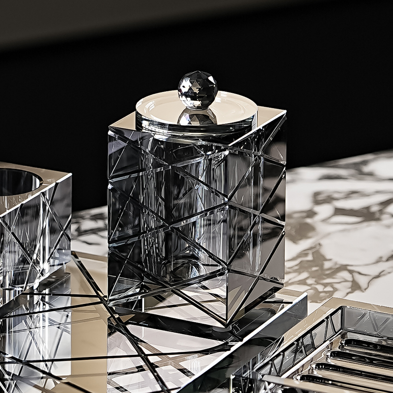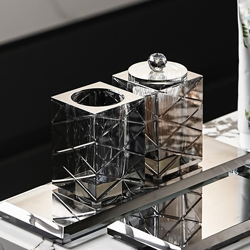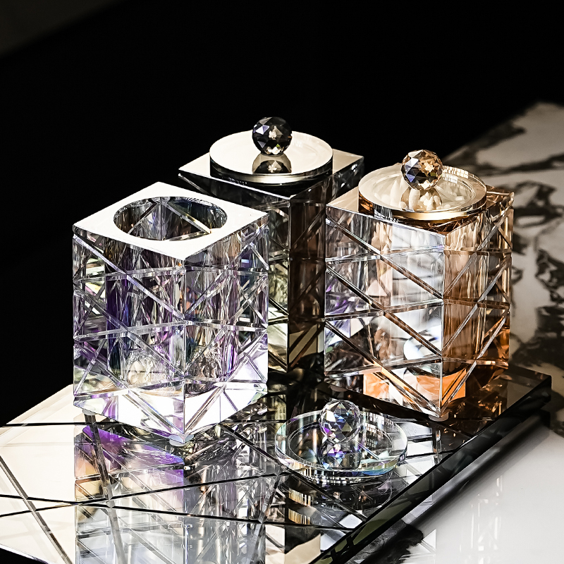 高端水晶玻璃牙签筒洗漱化妆棉牙线棉签收纳罐子酒店客厅茶几摆件