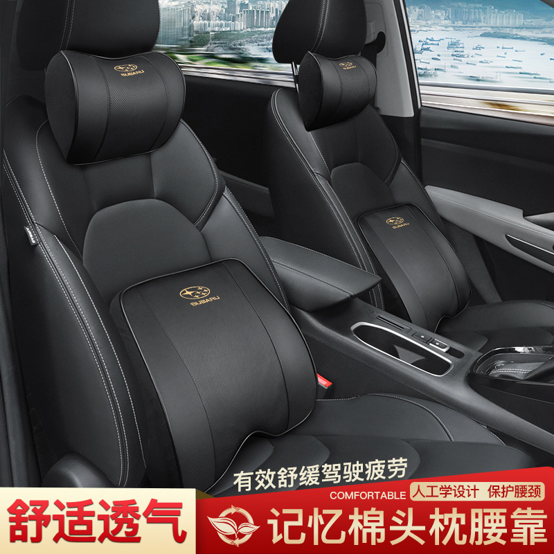 适用斯巴鲁森林人汽车腰靠垫旭豹车用头枕傲虎护颈枕WRX真皮靠枕