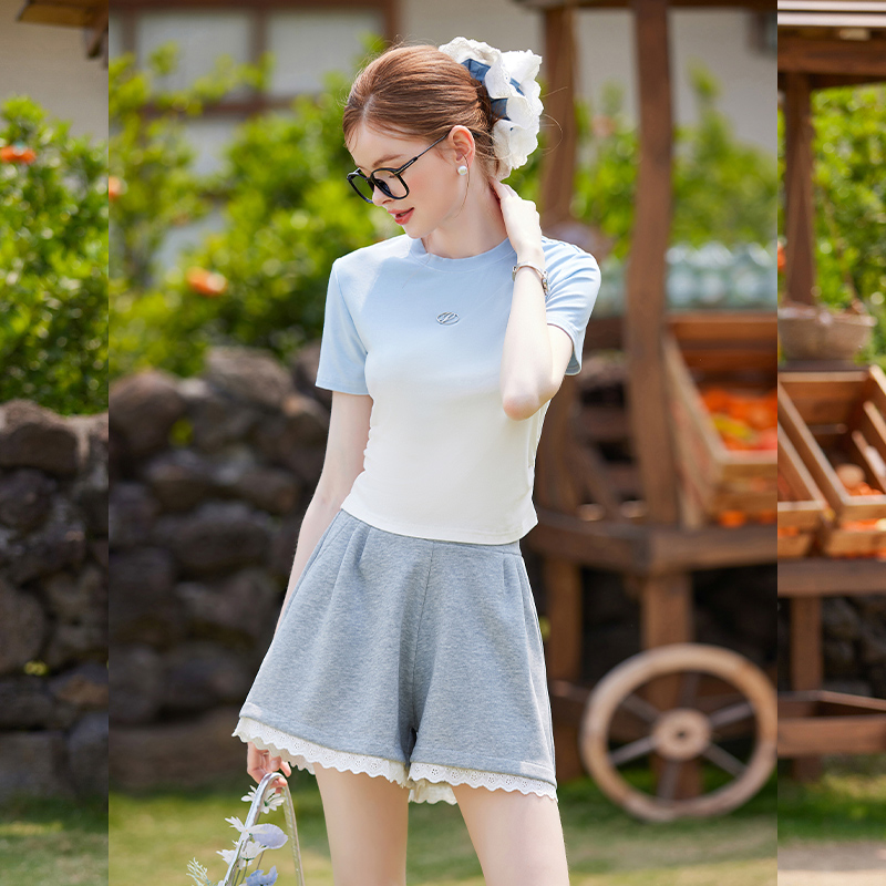 25夏新款 短袖 简约设计感弹力收腰女T恤 渐变修身 白鹿语时尚