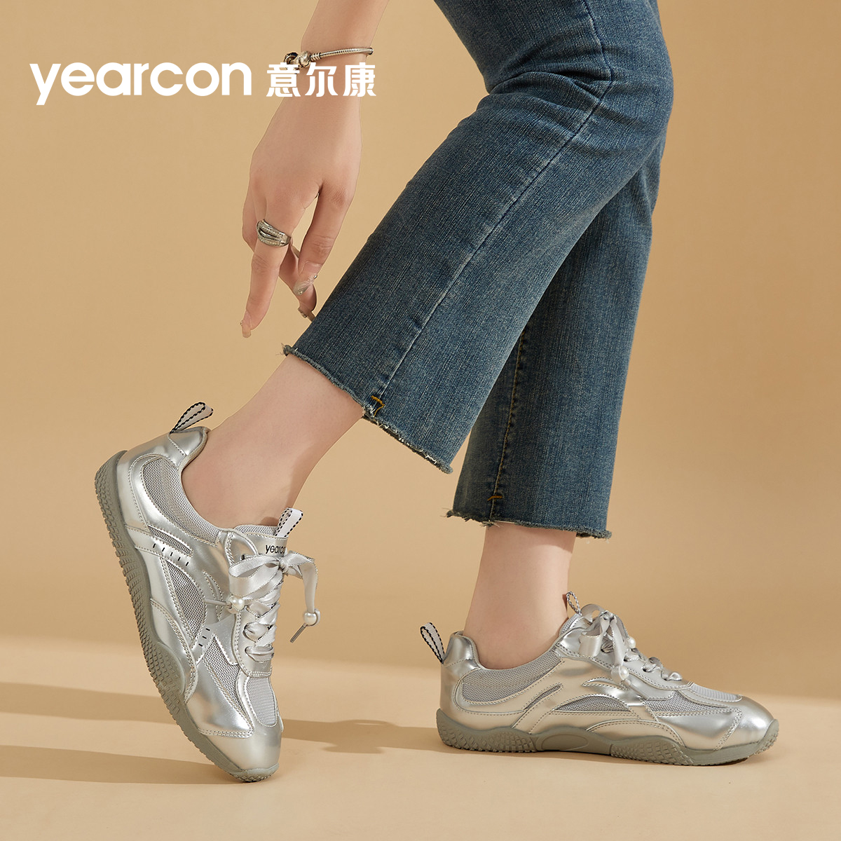 德训鞋 2025秋季 银色运动鞋 FILA 子飞泉鞋 斐乐女鞋 鞋 杨幂同款 新款
