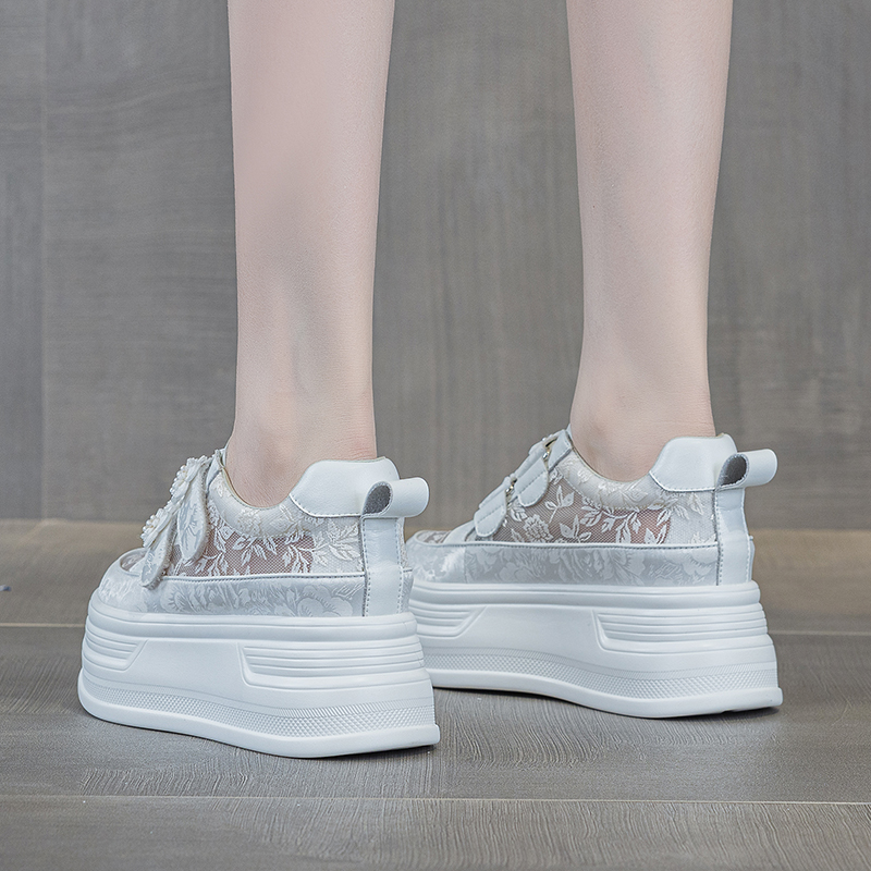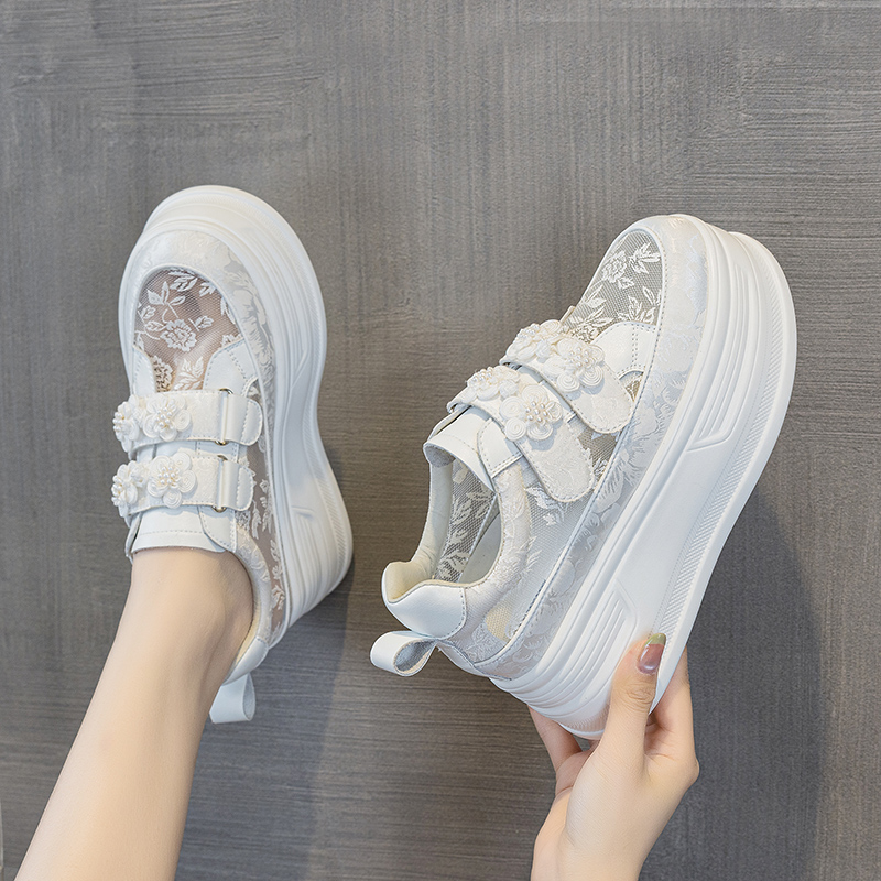 厚底内增高魔术贴运动休闲鞋 新款 女2025年夏季 国风透气网面小白鞋