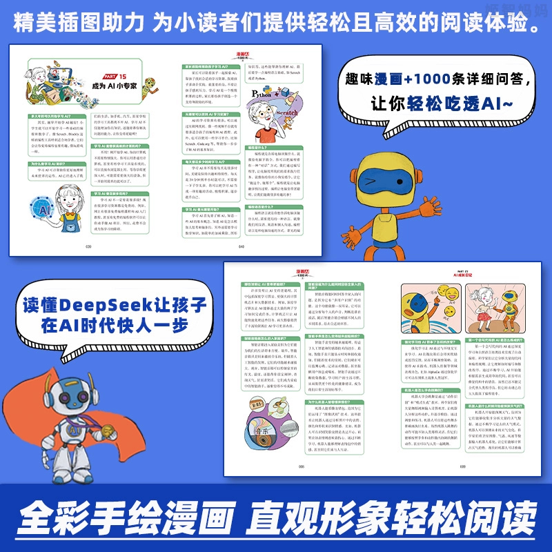 面纱读懂DeepSeek科普百科小学生三四五六年级课外书必读老师推荐 3册漫画AI1000问通俗易懂 解开人工智能 漫画形式 语言和有趣