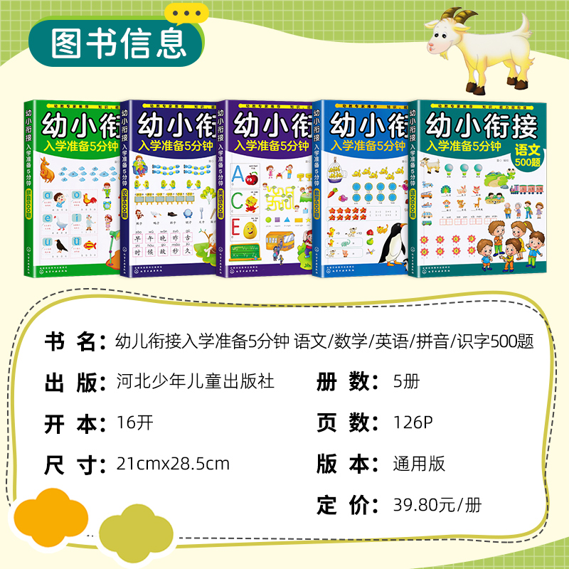 幼小衔接入学准备5分钟500题语文数学英语识字拼音 6岁儿童幼小衔接教材入学准备幼儿学前综合能力提升训练幼儿学前启蒙认知书籍