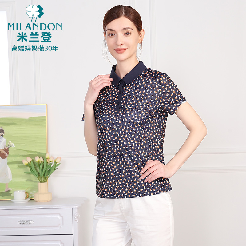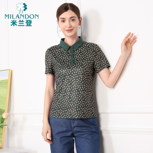 polo领印花针织T恤女时尚 米兰登中老年妈妈款 短袖 新款 2025年夏季